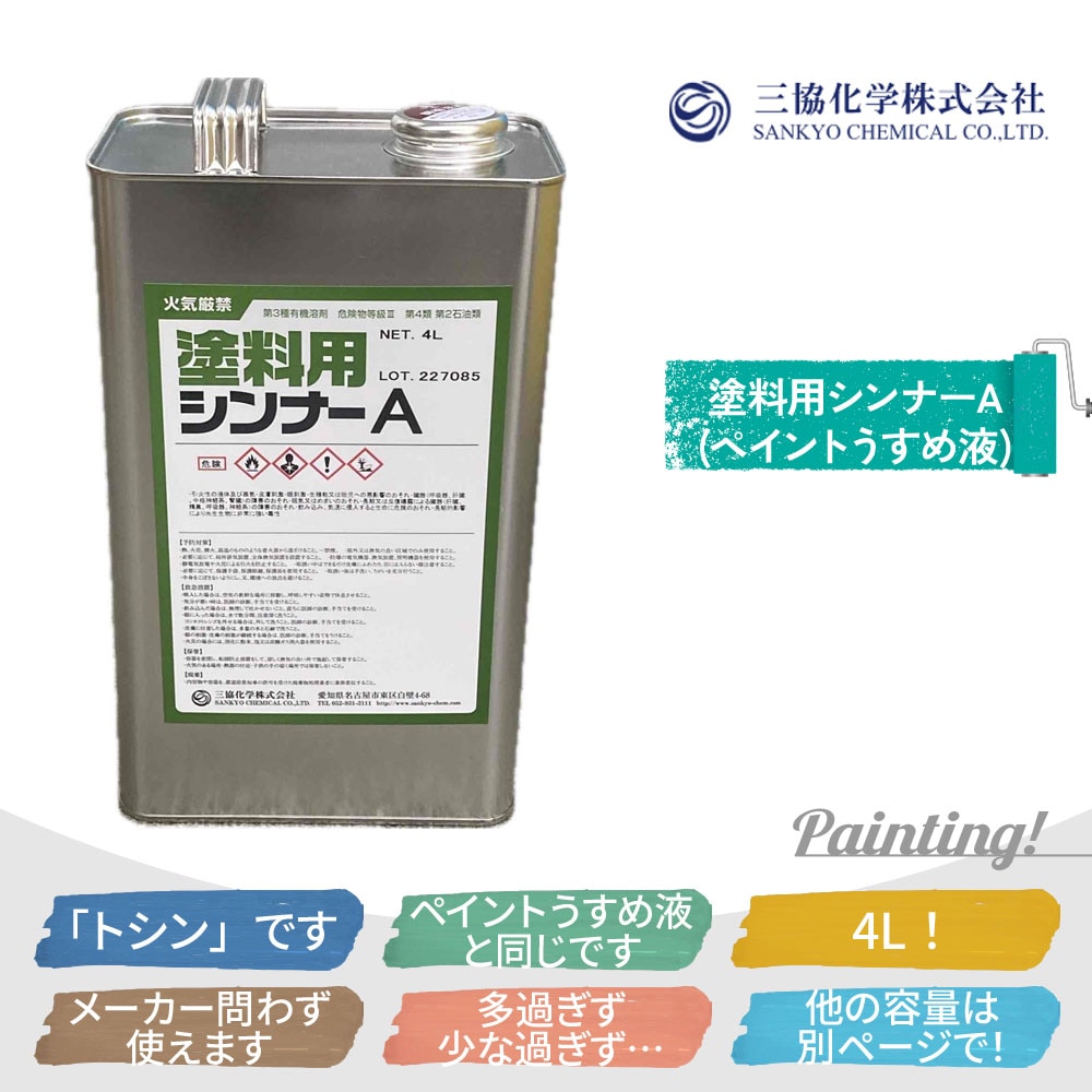 塗料用シンナーA 塗料メーカー問わず使える「ペイントうすめ液」 4L 三協化学株式会社