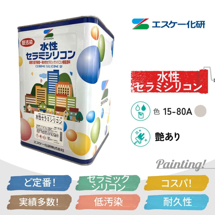 【ぼくたちの失敗大特価!】水性セラミシリコン エスケー化研 16kg 艶あり 15-80A 内外装用 (16kg缶で約45-64平米 2回塗)