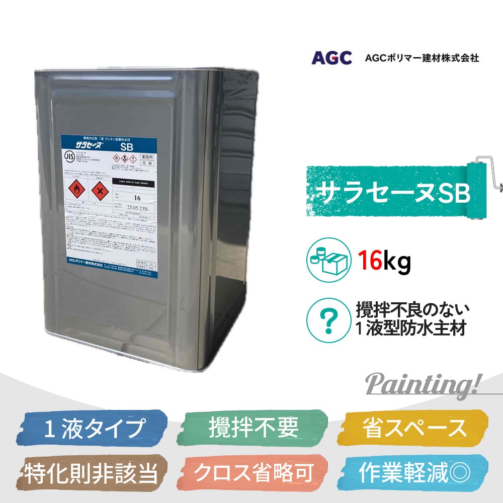 サラセーヌSB 1液で省力化に貢献する防水主材 AGCポリマー建材 16kg ブルーグレー 1液湿気硬化 環境対応型ウレタン防水材 (約6.1平米=SD工法にて2mm厚2.6kg 平米)