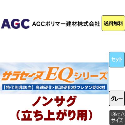 サラセーヌEQノンサグ立上り用 AGCポリマー建材 18kgセット グレー系 弱溶剤2液 高速硬化型 環境対応型ウレタン防水材 (18kg:約6.9平米=SD工法にて2.6kg 平米2回塗)