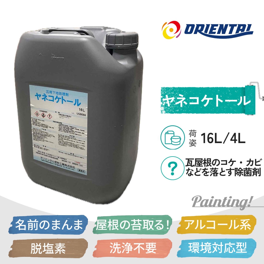 ヤネコケトール 瓦屋根のコケ・カビ除去に特化した下地処理剤 オリエンタル塗料工業 16L 4L アルコール系 脱塩素
